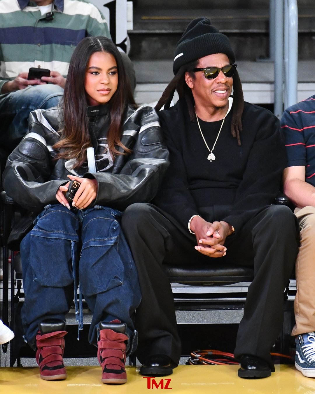 Blue Ivy and Jay-Z spent some father-daughter time while sitting in the court side at the Los Angeles Lakers vs. San Antonio Spurs game at the Crypto.com Arena on December 10. The 13-year-old who bears a clear resemblance to her mother Beyoncé, dressed stylishly in a Balenciaga jacket and cargo-style jeans.