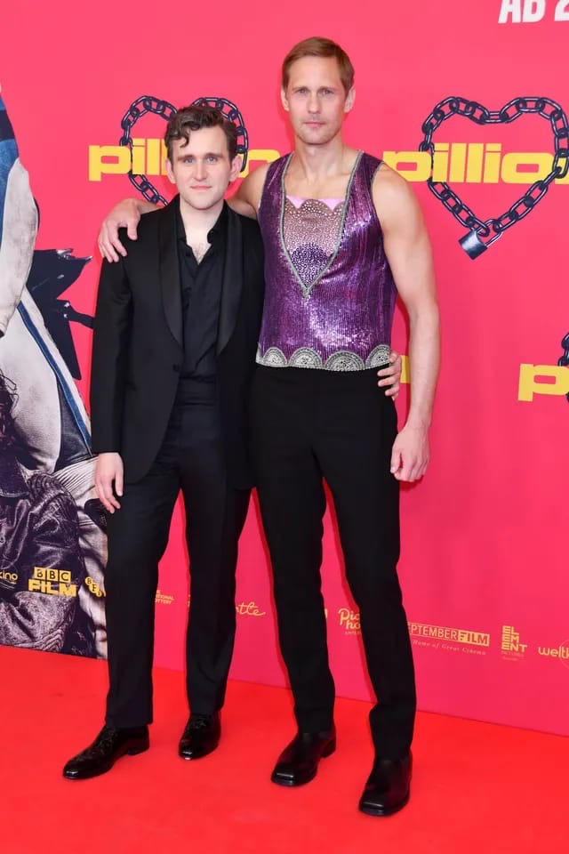 He was joined on the red carpet by his co-star, Harry Melling, who played his submissive counterpart in the film. Melling wore a classic black suit, offering a contrast to Skarsgård’s styling. Pillion was directed by Harry Lighton, with Skarsgård playing a biker who begins an unconventional submissive relationship with a parking attendant.