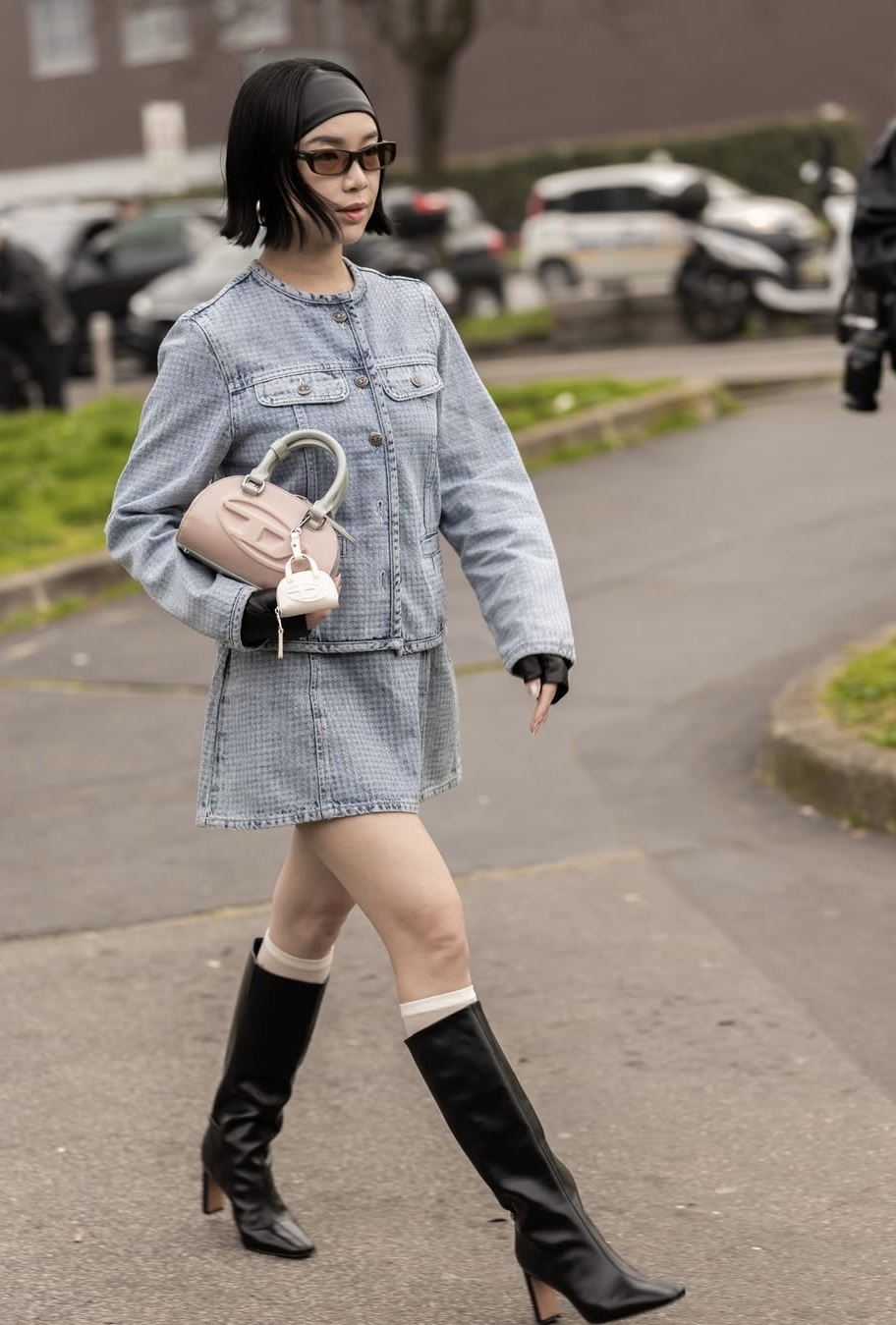 Some attendees experimented with textures. Lightweight fabrics and subtle layering were seen, while denim appeared frequently across outfits. Many embraced coordinated denim pieces, pairing jackets with matching skirts or trousers.