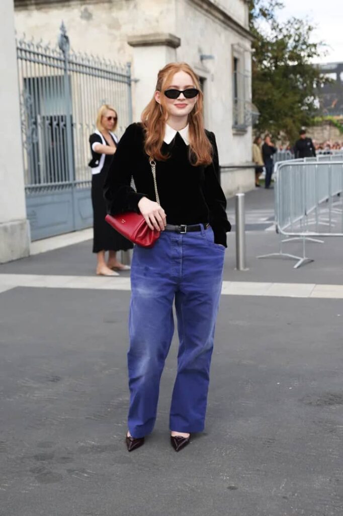 Prada continued to attract a discerning crowd, with Carey Mulligan in an ensemble balancing comfort and high fashion. Sadie Sink and Maya Hawke joined her in the front row, each showcasing distinctive personal style that reflected the collection’s modern sensibility. Their appearances reinforced Prada’s ongoing reputation for marrying high fashion with approachable elegance.