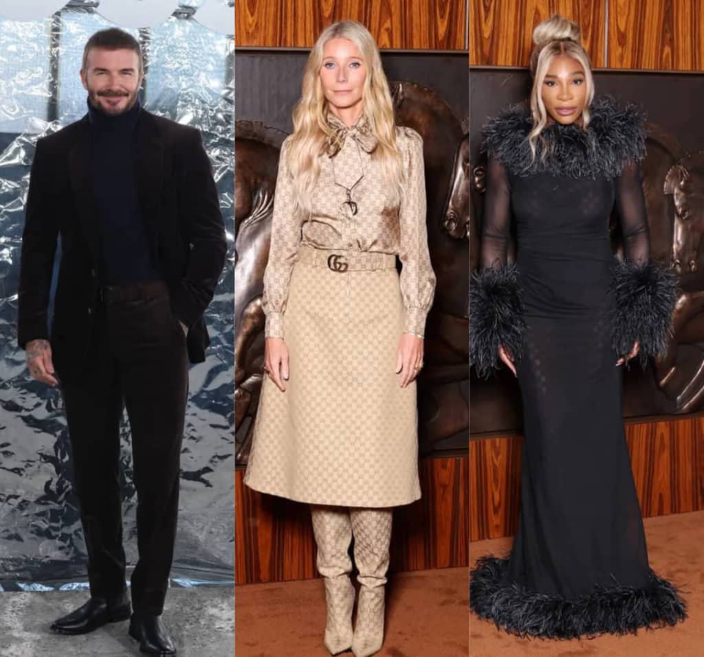 Gucci’s presentation marked a standout moment this season, not only for Demna’s creative direction but also for the high-profile attendees. Gwyneth Paltrow, Demi Moore, Serena Williams, and David Beckham all took their seats, bringing a mix of elegance and individuality. Demi Moore, in particular, caught attention with her new face-framing bangs, which complemented her presence during the short film “The Tiger,” premiered alongside the collection. The energy in the room highlighted how celebrity influence remains central to the allure of Milan’s runways.