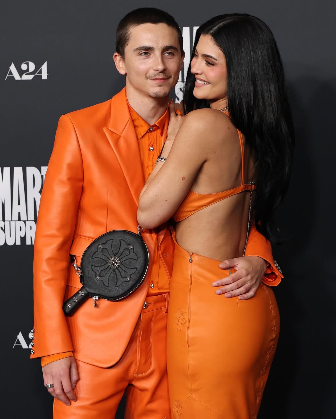 Timothée Chalamet and Kylie Jenner Wore Matching Orange Outfits at the Marty Supreme Premiere