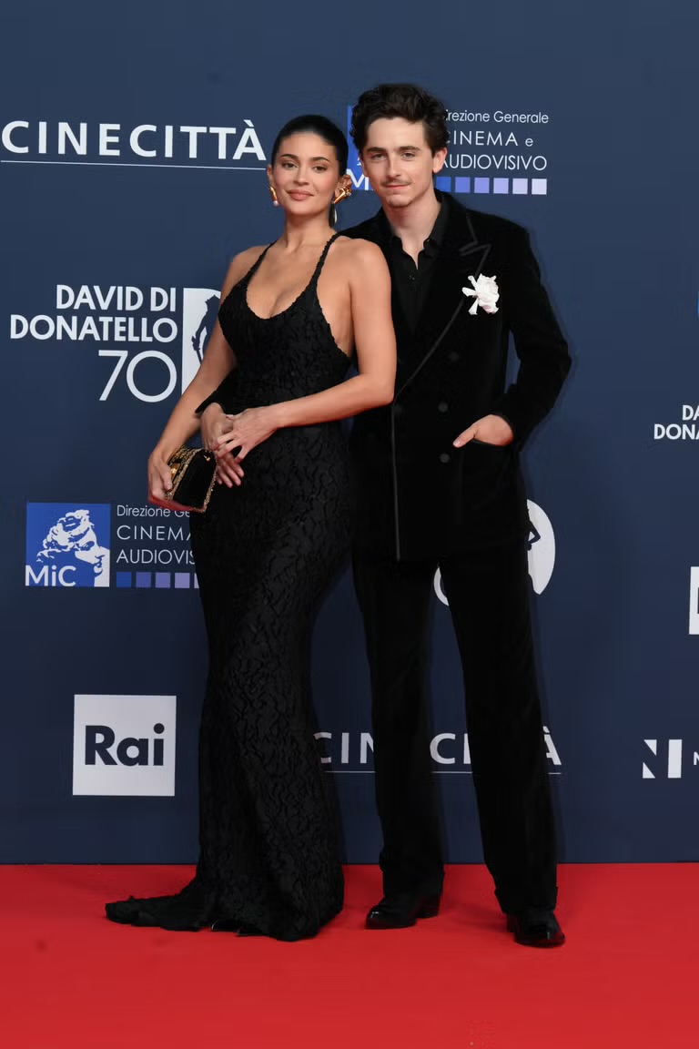 Their first red carpet appearance was back in May 2025, when they attended the David Di Donatello Awards in Rome. Just as they did on Monday, the couple arrived in a matching monochrome ensemble. Chalamet wore a tailored velvet suit decorated with a boutonniere, while Jenner wore a figure-hugging dress with a plunging neckline from the Schiaparelli Fall/Winter 2025 collection.