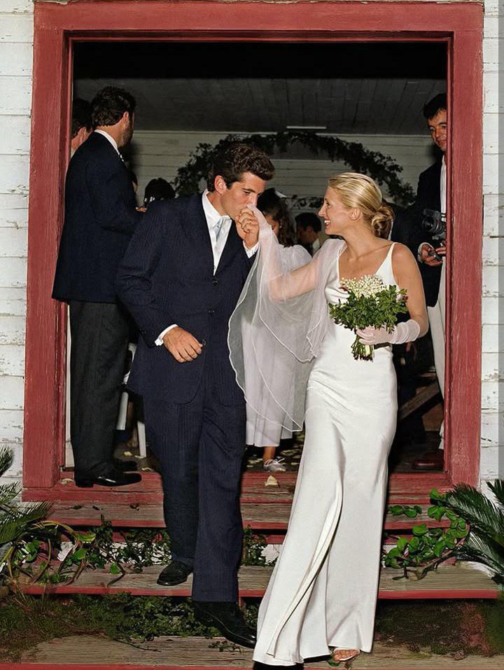 On September 21, 1996, Carolyn Bessette‑Kennedy married John F. Kennedy Jr. on Cumberland Island, Georgia. Her wedding dress, designed by her friend Narciso Rodriguez, notable for its simple, tailored design. Unlike the elaborate, heavily embellished gowns common in the mid‑1990s, the dress was a pearl-white silk crepe slip gown cut on the bias with a cowl neckline. It was tailored to fit her closely and emphasized clean lines.