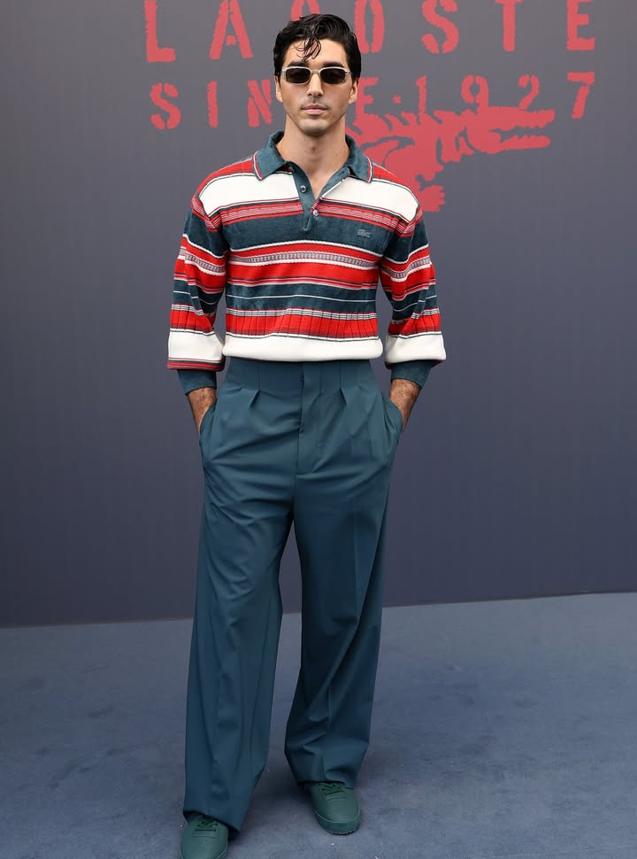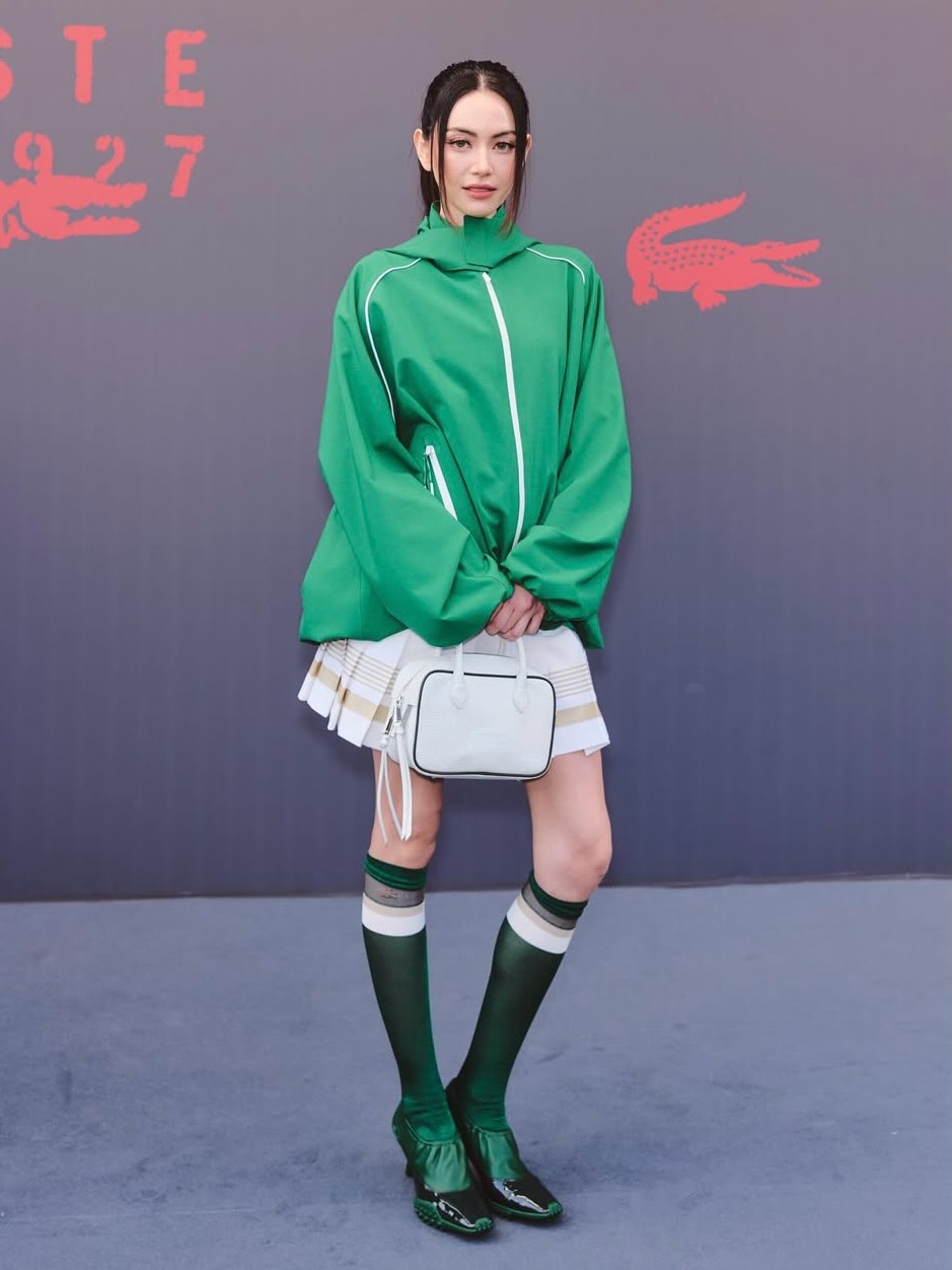 Paris Fashion Week continued, gathering celebrities at the Stade Roland-Garros on Sunday March 8, for the Lacoste Womenswear Fall/Winter 2026–2027 show. Designed by creative director Pelagia Kolotouros, the collection was inspired by the brand’s tennis heritage, referencing a rain-soaked match played by founder René Lacoste in 1923.