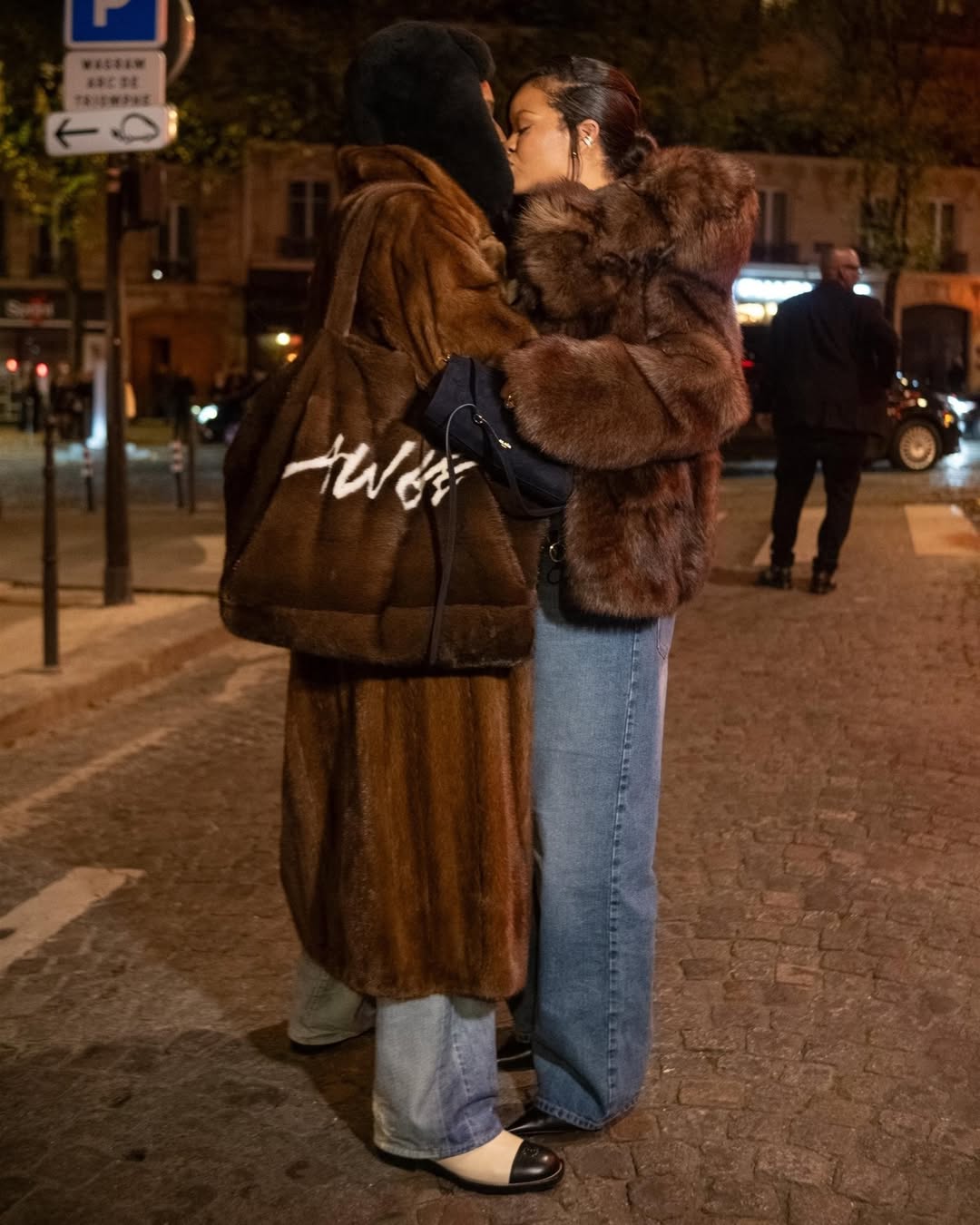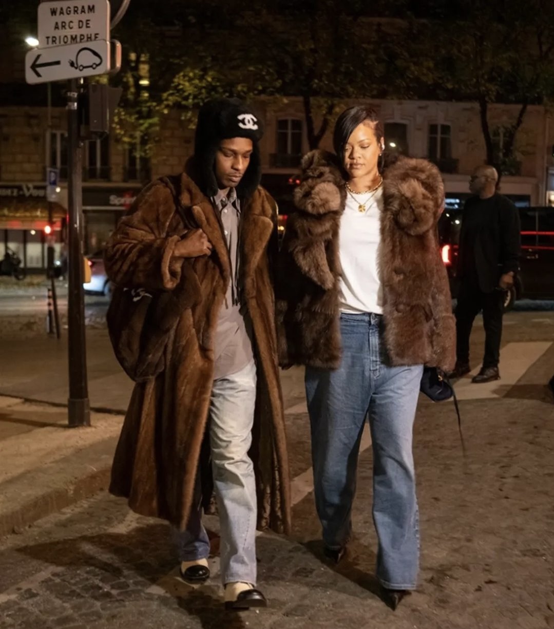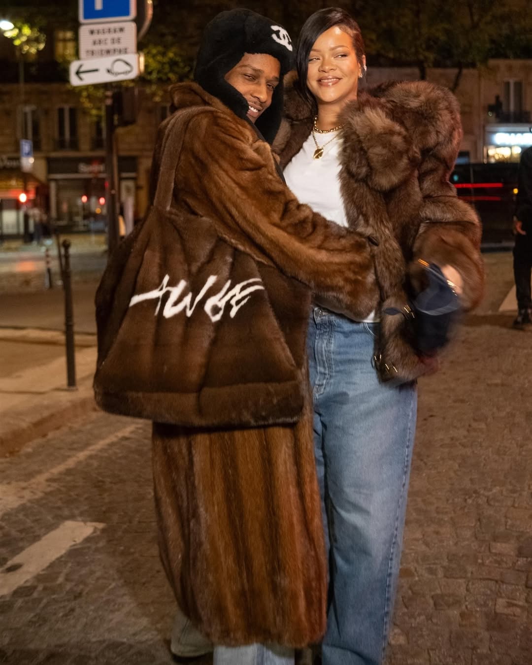 Rihanna and A$AP Rocky Step Out in Matching Fuzzy Coats for a Cozy Paris Date Night