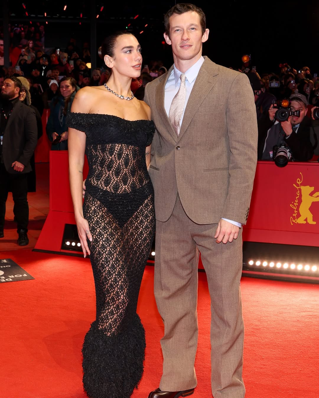 On Saturday night, February 14, Dua Lipa and her fiancé, Callum Turner, who got engaged last summer, celebrated Valentine’s Day by stepping out for the Berlin Film Festival. The couple attended the premiere of Callum’s forthcoming film, “Rosebud Purning”, where both stars appeared in contrasting styles that still suited each other.