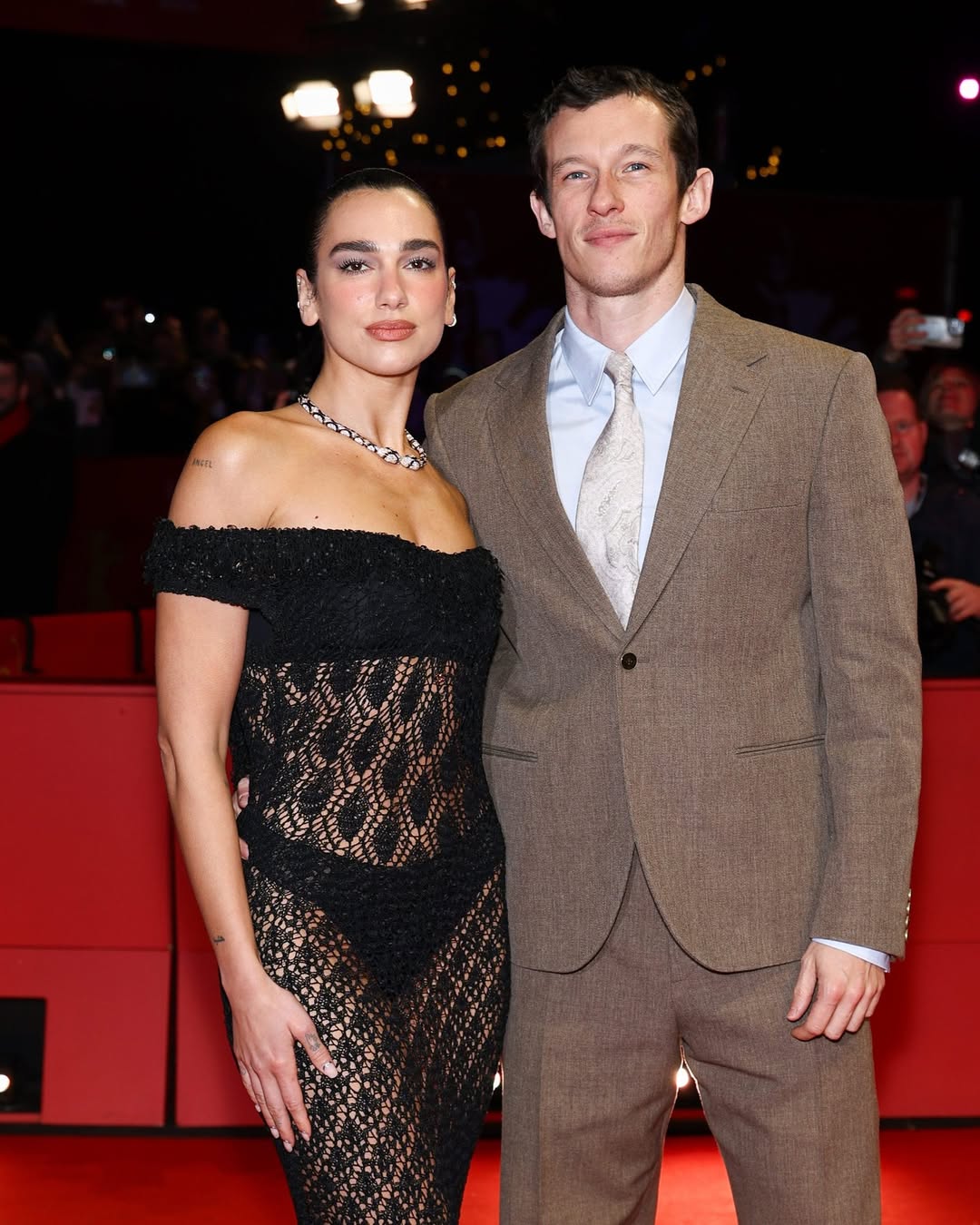 On Saturday night, February 14, Dua Lipa and her fiancé, Callum Turner, who got engaged last summer, celebrated Valentine’s Day by stepping out for the Berlin Film Festival. The couple attended the premiere of Callum’s forthcoming film, “Rosebud Purning”, where both stars appeared in contrasting styles that still suited each other.