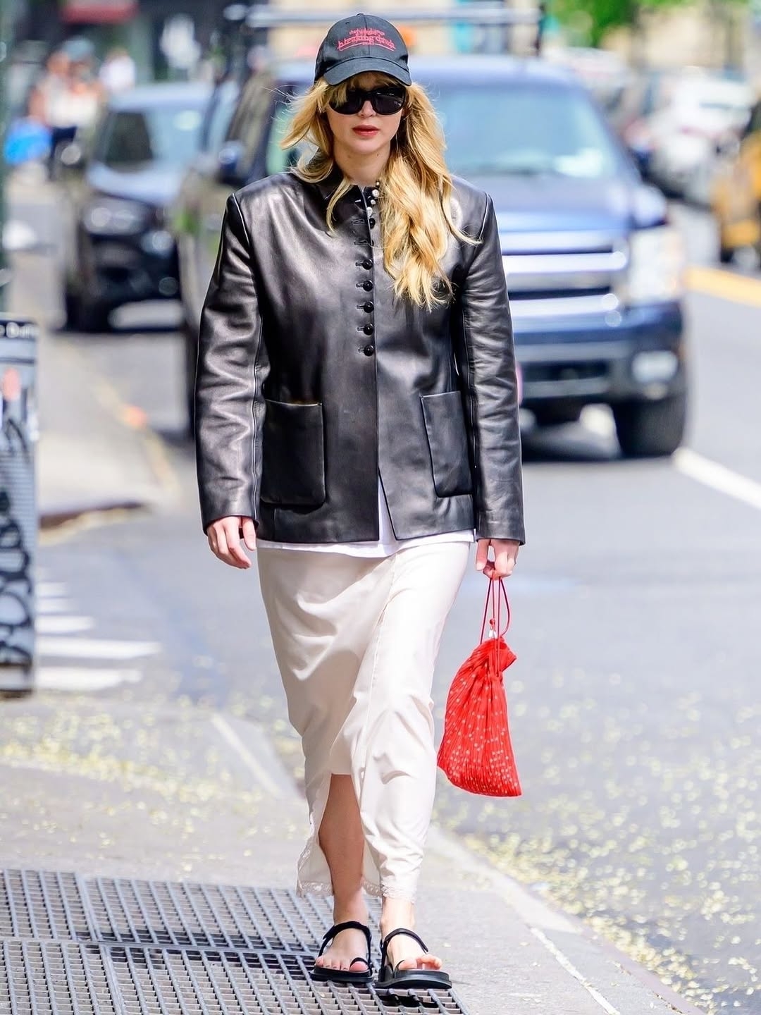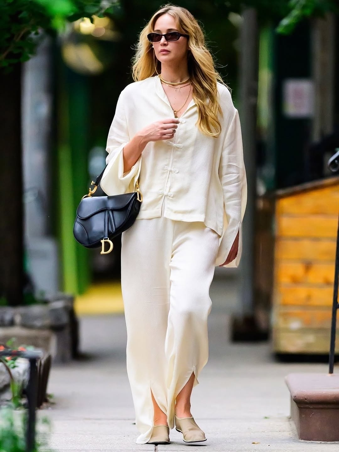 Stone was styled by Petra Flannery, who kept the look almost identical to how Paltrow wore it in Great Expectations: minus the lime-green belt that cinched it on the runway. The minimalist tweaks gave the vintage Donna Karan set a softer finish, proving once again that with the right styling, a piece from nearly three decades ago can still look refreshingly current.