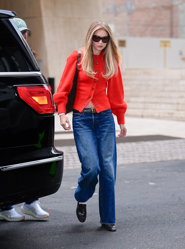 Gigi Hadid Brings Tomato Red Back in Guest in Residence Cardigan