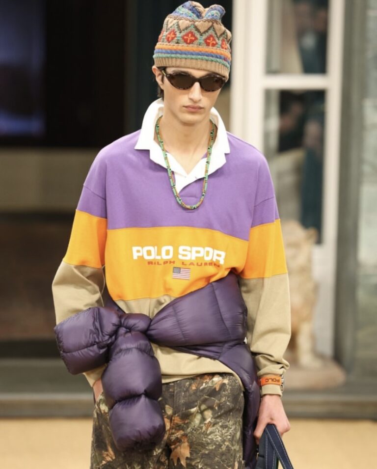 The collection is like a story unfolding through the many ways men live and dress. At its core, Fall 2026 channels authentic American style, but with a lively, modern twist. Expect rough textures, deep earth tones, and simple, easy-to-wear tailoring that looks effortless but is carefully considered. Pieces range from vintage‑tinted rugby shirts with bold stripes to loose denim and classic camouflage, honoring the brand’s iconic Polo roots.