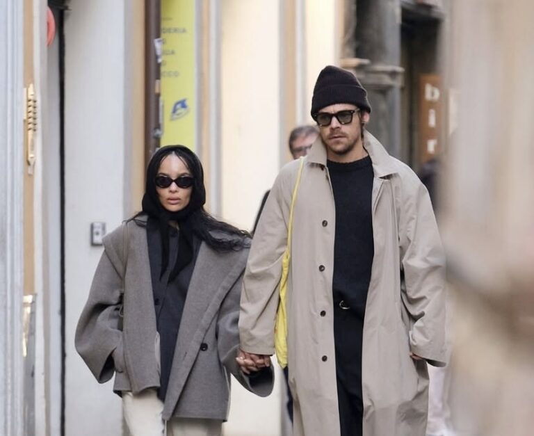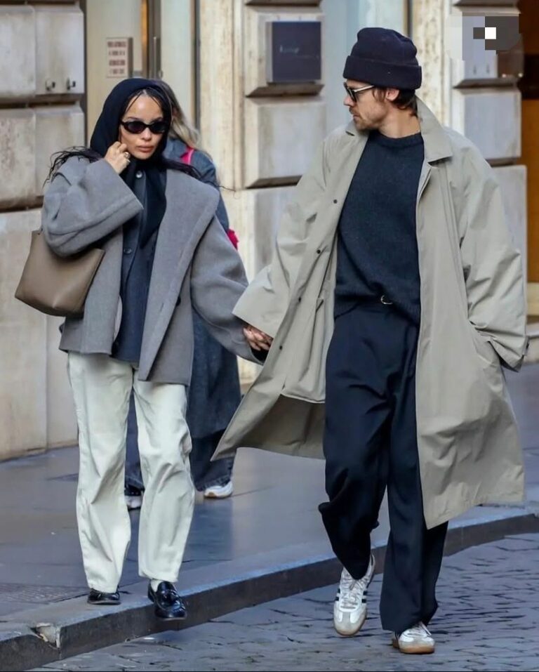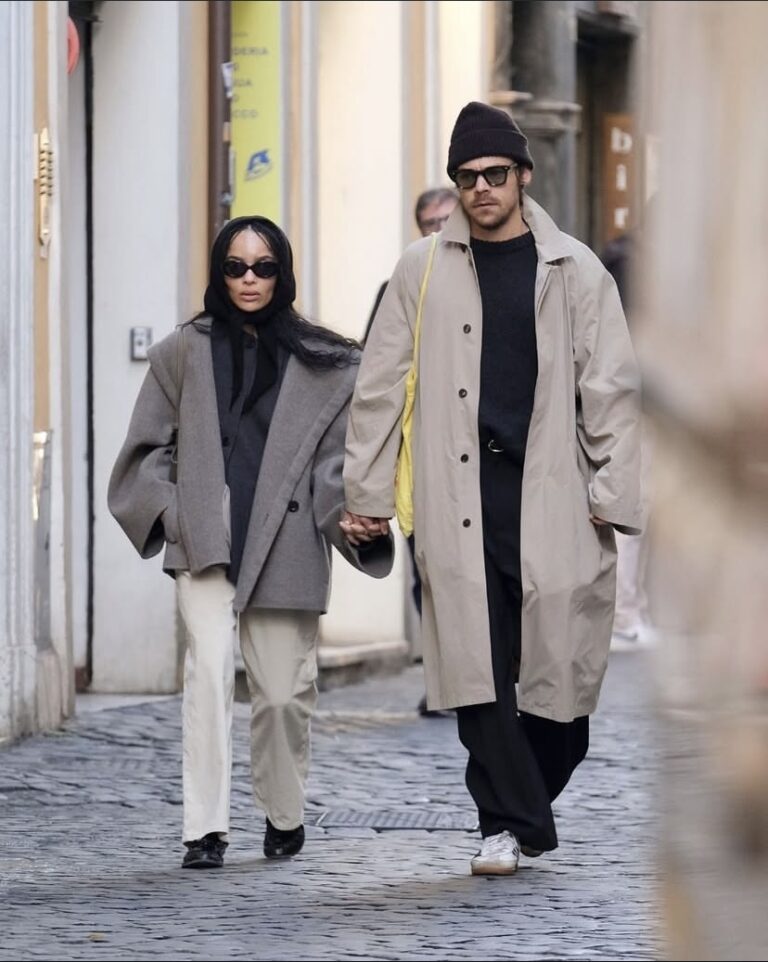 Returning to Rome, where they were earlier this year, American stars Zoë Kravitz and Harry Styles took a stroll around the Italian cobblestone streets while wearing two different styles of relaxed fall pieces. They went hand in hand, matching each other’s pace and mood.