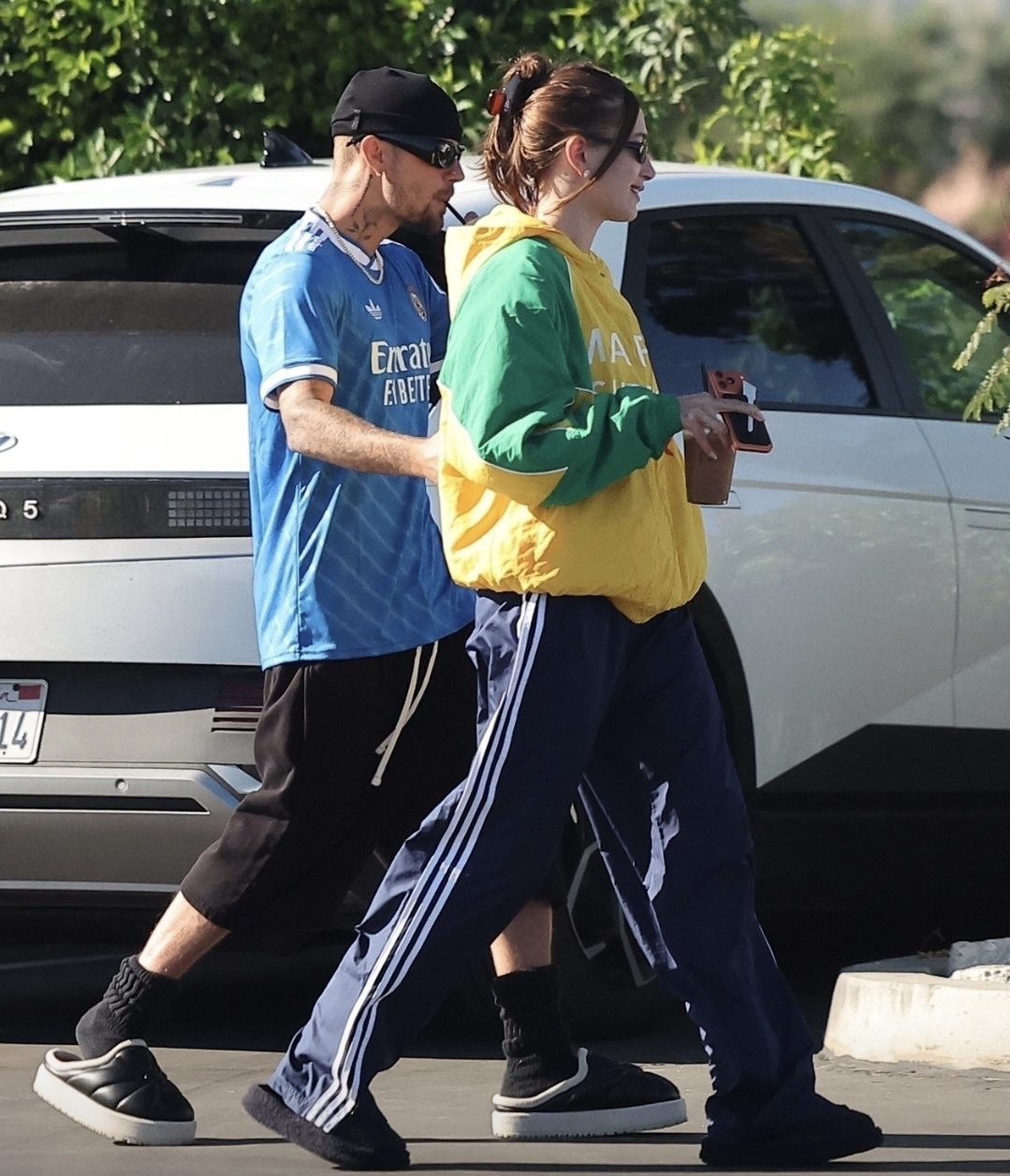 Meanwhile, Justin opted for a Real Madrid third kit for the 2025/2026 season in the club’s signature blue. He paired it with casual track pants, a black cap, sporty sunglasses, and black and white Skylrk mules, keeping the look relaxed yet sporty.