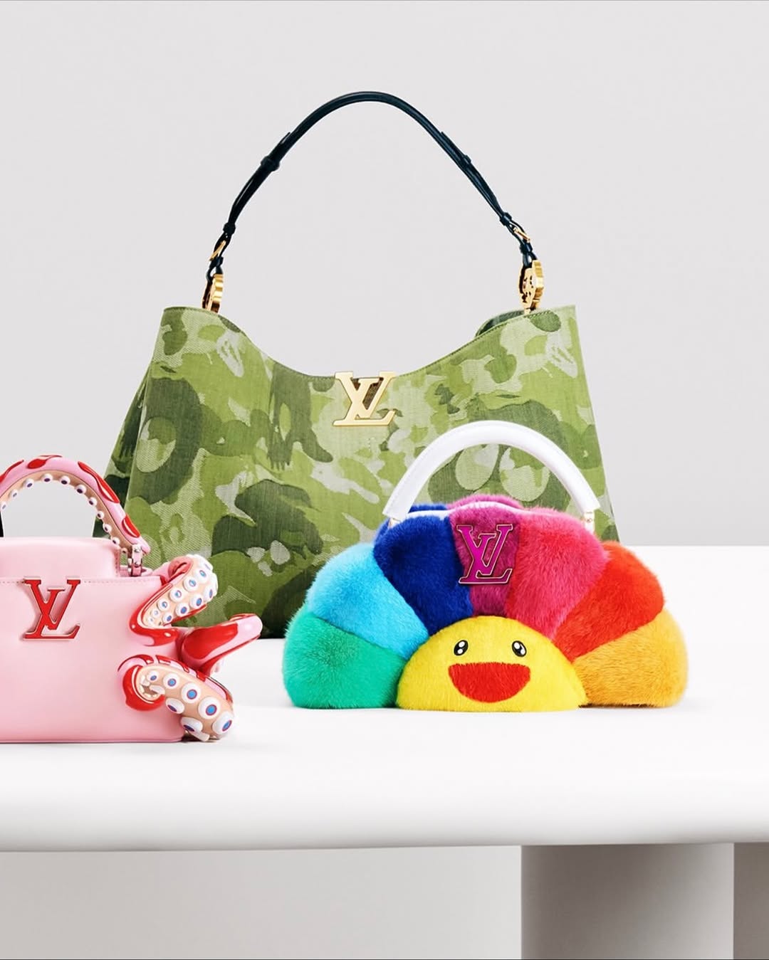 The latest Artycapucines VII Collection made its debut at Art Basel Paris 2025, showing eleven reimagined versions of Louis Vuitton’s classic Capucines bag, each transformed into a small work of art. Murakami is famous for his bold, pop-art aesthetic and his signature style defines each piece.