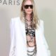 Charlize Theron went to the Givenchy show in Paris dressed in an outfit that had people staring. She wore a white oversized blazer and loose trousers; but here’s the twist: she didn’t wear any shirt. It was simply a black bra adorned with lengthy, dangling jeweled strands like an extravagant necklace draping down her torso. Though unconventional, she made it look natural. The look came from Givenchy’s creative team under Alessandro Michele.