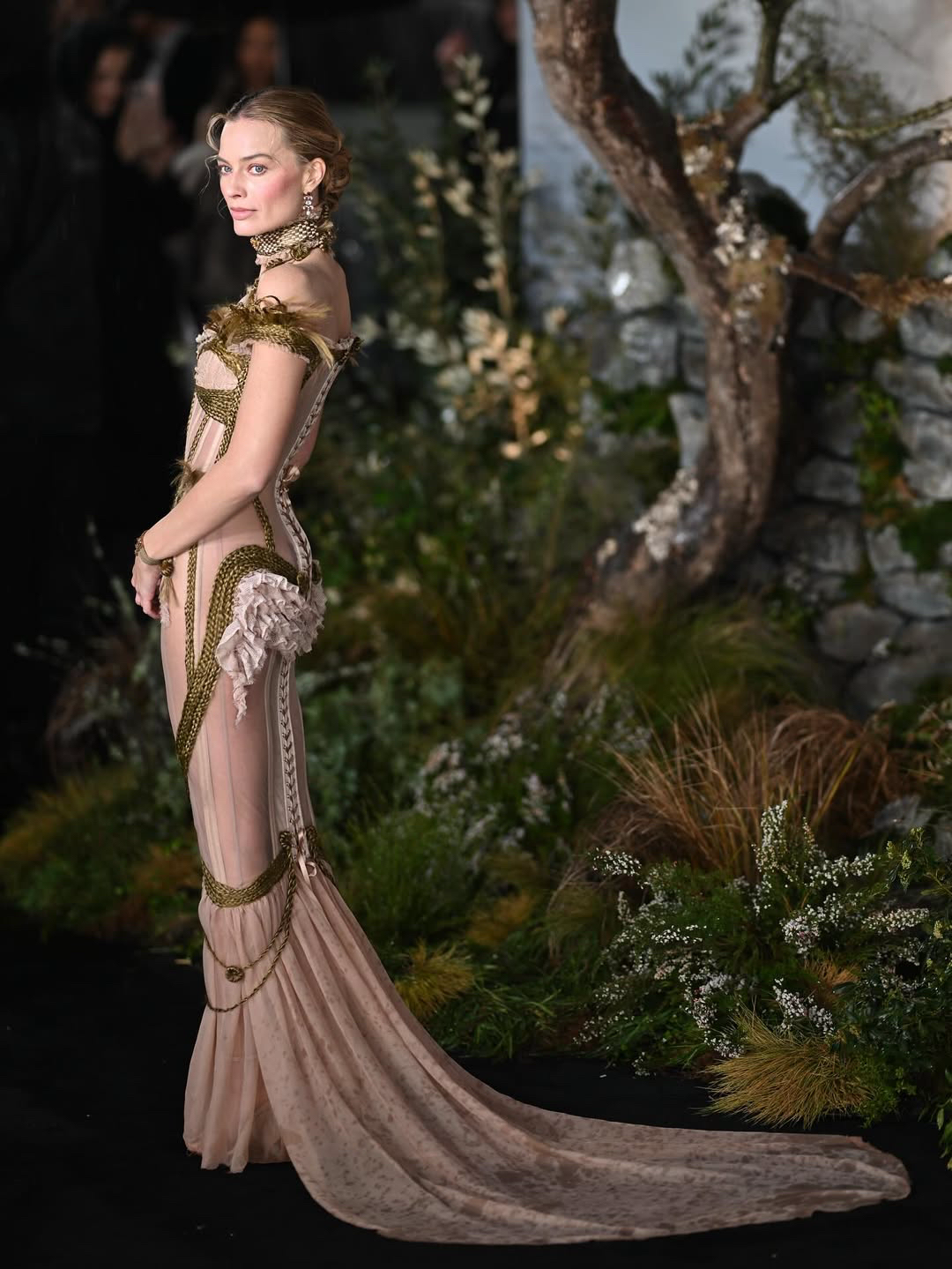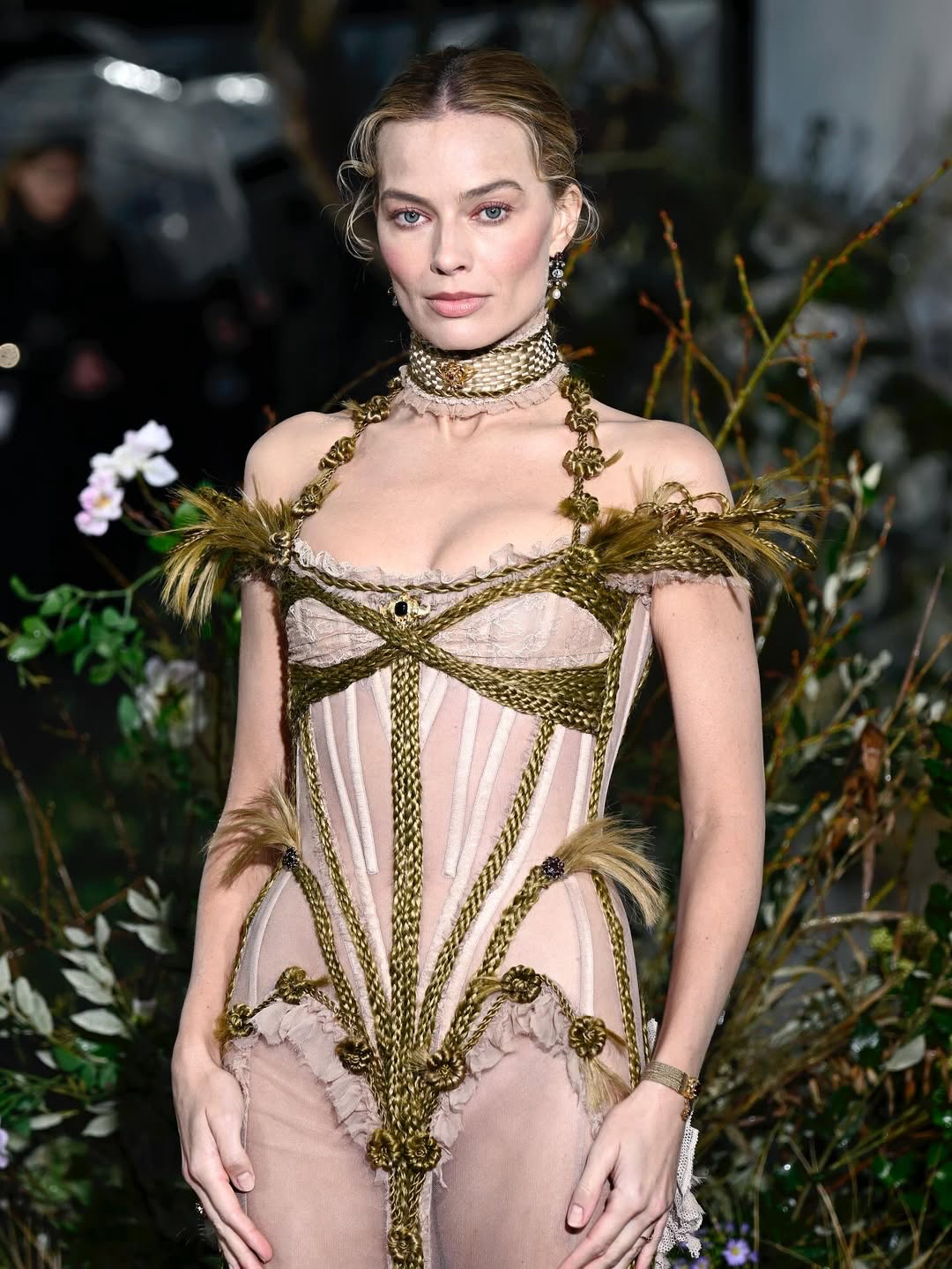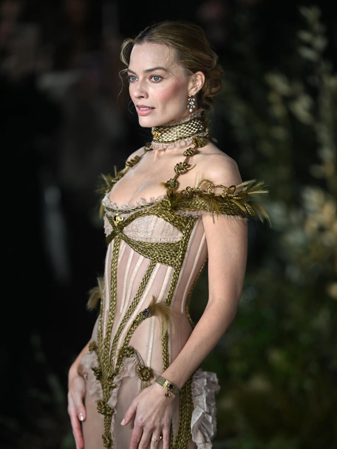Margot Robbie Wears Braided Corsetry and Brontë-Inspired Jewelry at the Wuthering Heights Premiere