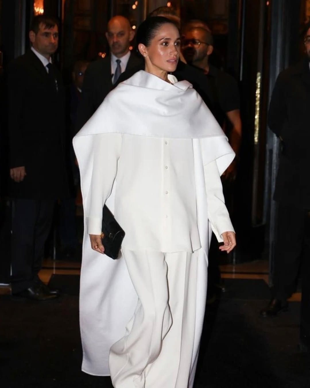 Monochrome dressing is often worn by the women of the royal family. The late Queen Elizabeth was known for her single-tone outfits, and recently, Meghan, Duchess of Sussex, embraced the same styling during Paris Fashion Week, opting for an all-white ensemble at Balenciaga’s show.