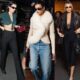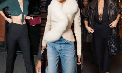 Her outfit was in tune with the season’s trend, as olive shades could be seen across fall 2025 palette. It consists of a fitted blazer jacket, matching top beneath it and high-waist trousers with extended pockets and flared legs. She paired the suit with a neutral shade pointed toe pumps from Ralph Lauren.