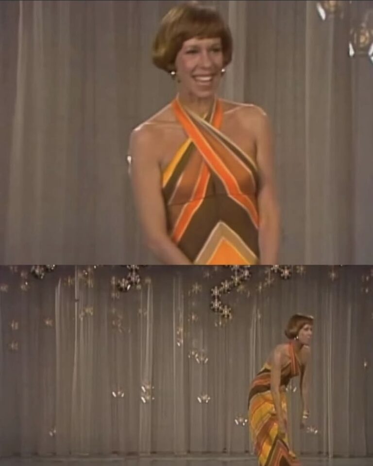 During the latest Saturday Night Live promo campaign, Grande appeared inspired by wearing a vintage Bob Mackie dress originally worn by Carol Burnett in the 1970s, an evident change from her regular Glinda looks. Styled by Law Roach, the retro chevron-patterned gown showed Grande’s interest in classic design and traditional Hollywood glamour.