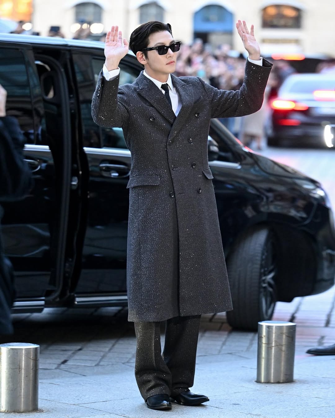 The Korean Star Ji Chang Wook showed up in a tailored suit, worn with a crisp white shirt and a black tie. He complemented it with dark sunglasses and wore a black shoes.