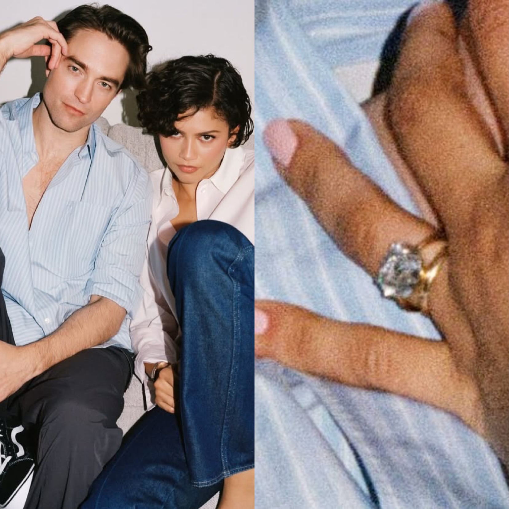 A24 confirmed that during the promo shoot for “The Drama,” neither Zendaya nor her co-star, Robert Pattinson, were in character. Pattinson wasn’t wearing a ring, which suggested that Zendaya’s engagement ring was real and not a part of the shoot’s styling.