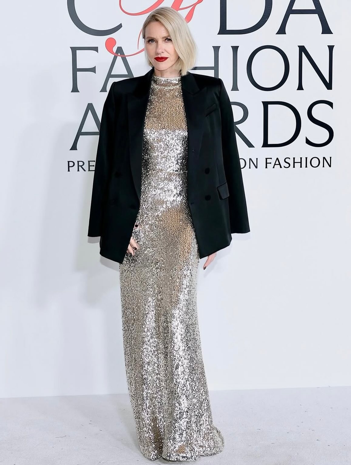 Other notable names brought distinct styles to the red carpet. Naomi Watts, for one, wore a silver sequin gown layered with a black tuxedo jacket by Jonathan Simkhai. The pairing added structure to the shimmering gown, wrapping up a night that celebrated the evolution of American fashion.
