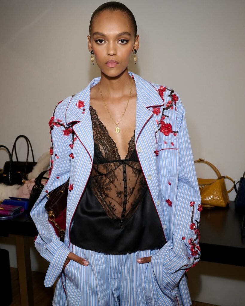 Milan set the tone with collections that blended lingerie elements with everyday dressing. Versace highlighted bold-colored denim and separates, while Dolce & Gabbana transformed striped pajama sets into chic women’s looks, pairing them with subtle lingerie-inspired details. The results were intimate yet wearable, striking the perfect balance for modern style.