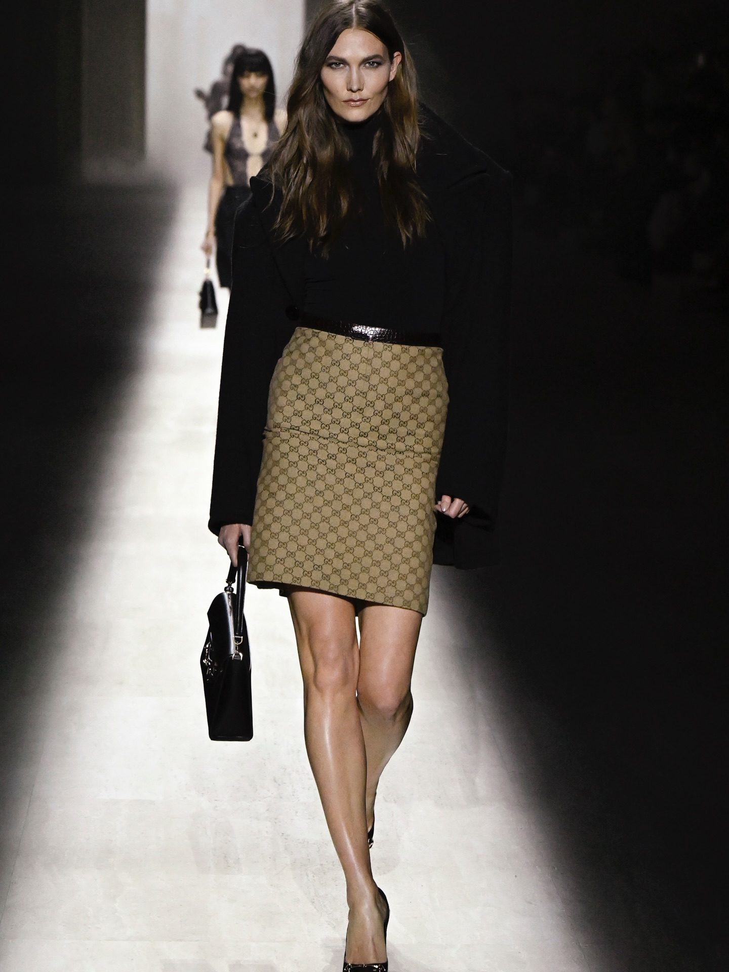 The runway featured leading supermodels across different generations. Kate Moss closed the show, while Karlie Kloss returned to the runway for a rare appearance. Emily Ratajkowski and Elsa Hosk added current runway relevance, and Italian runway regular Mariacarla Boscono showed her long-standing presence in Milan runway shows.