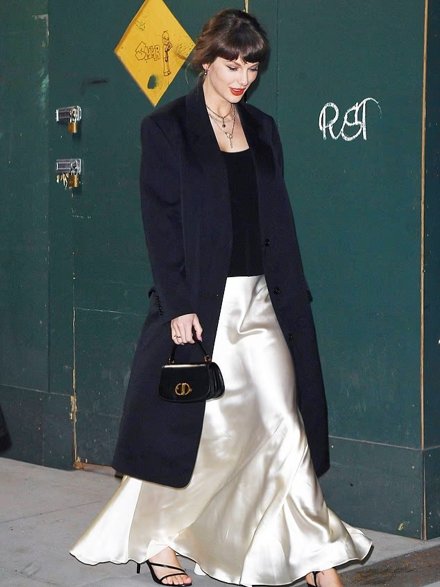 Taylor Swift was photographed in New York City with longtime friend Ashley Avignone, on Wednesday, April 8, amid ongoing speculation around her wedding plans. She was seen in a silky white maxi skirt that had a coded bridal feel to it.