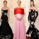 Sydney Sweeney chose a strapless Oscar de la Renta gown in a saturated red, complemented with diamonds that played into a deliberately Old Hollywood mood. Her choice spoke to a performer aware of her growing profile, offering a look that was timeless enough to photograph beautifully while still making her stand out in a night crowded with statement dresses.