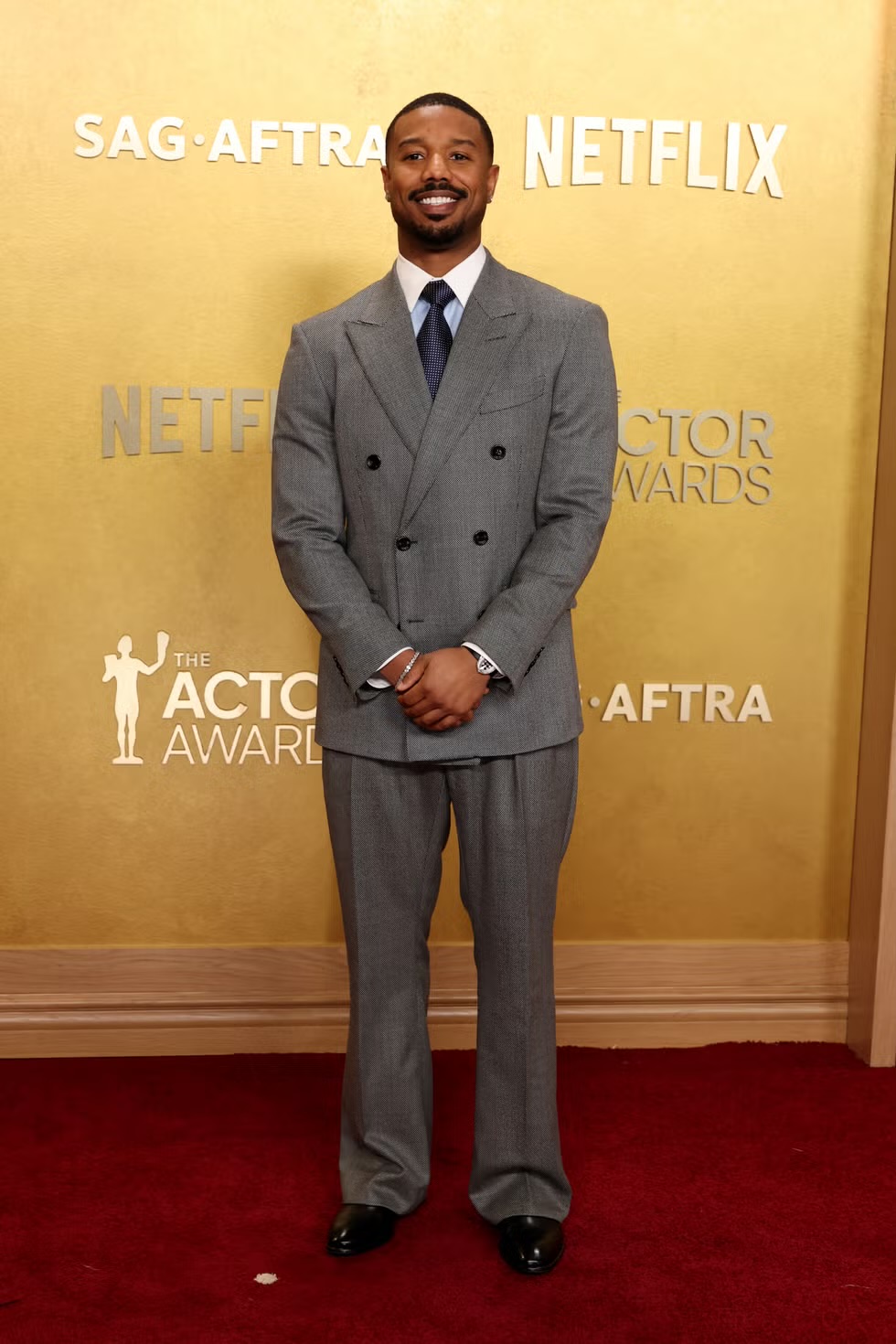 The men on the red carpet arrived in their own interpretations of the evening’s theme, Connor Storrie wore a Saint Laurent tuxedo paired with a Tiffany & Co. diamond necklace, Timothée Chalamet wore a white Prada blazer, while Michael B. Jordan arrived in a suit from Tom Ford.