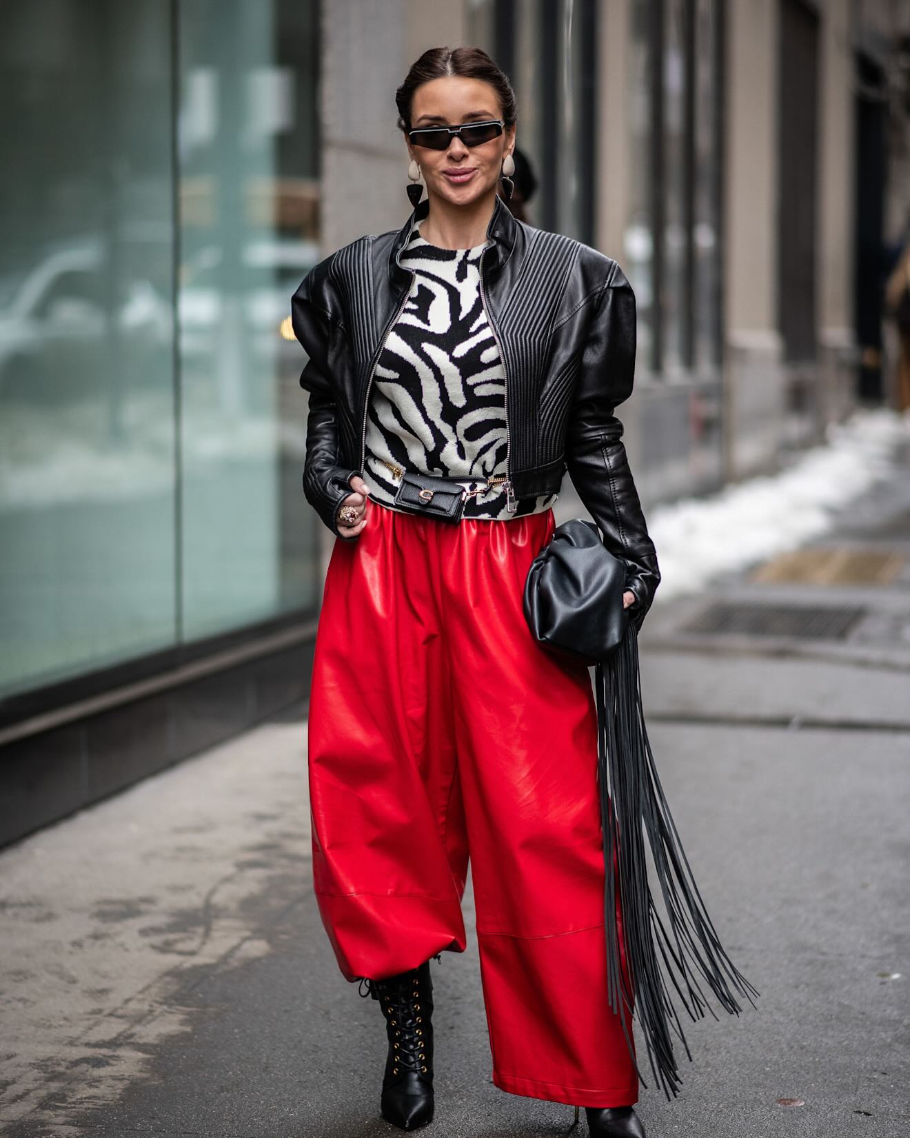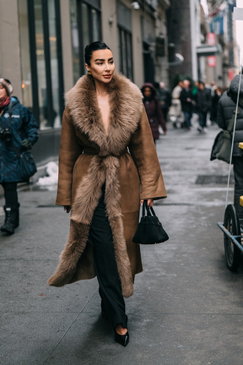 Texture dominated the street style scene. Shearling trims and structured wool coats added dimension while remaining practical, reflecting how fashion insiders are reworking winter essentials. Layering felt deliberate and structured, and was built around proportion rather than excess, offering wearable, directional fall ideas.