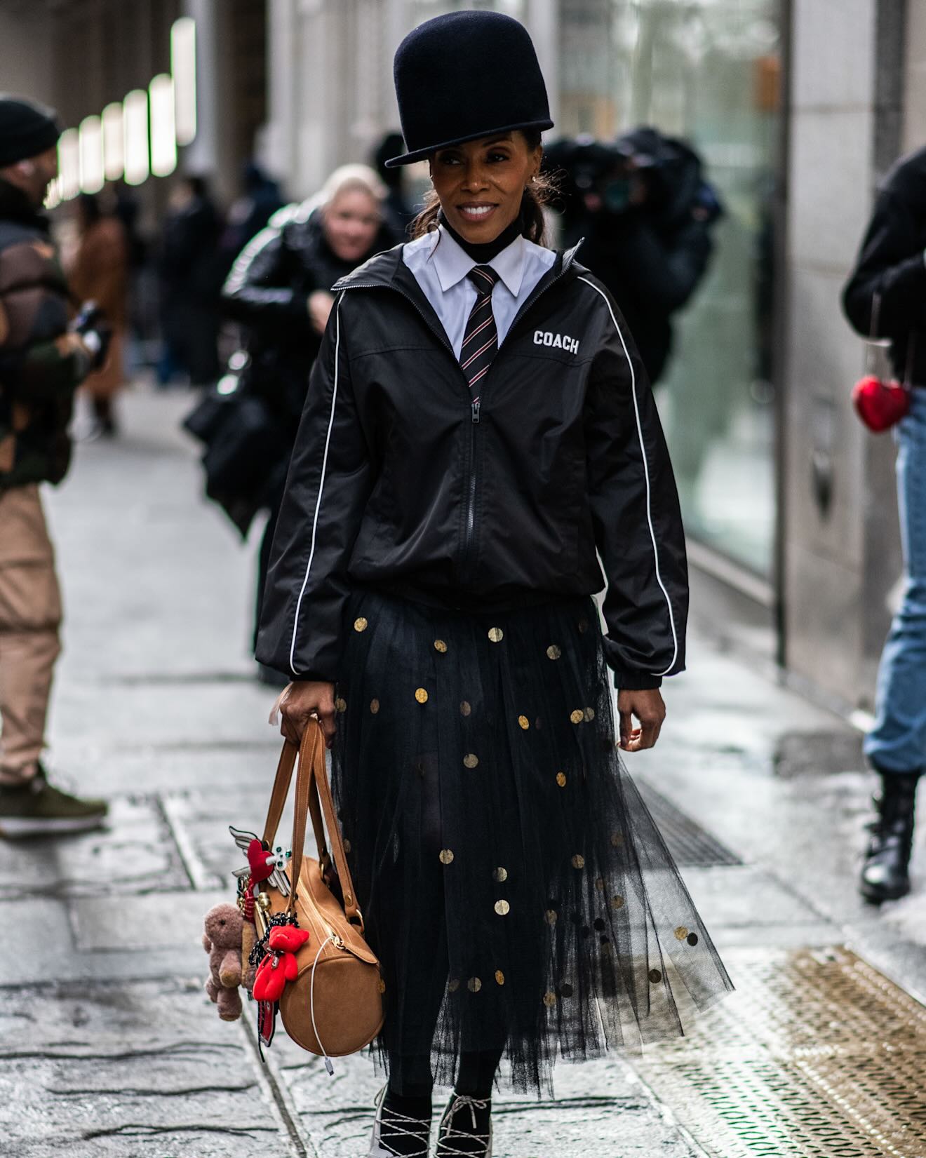Accessories stood out. Street style photographers captured bold bags, elongated scarves, and sharply defined footwear that completed each outfit, highlighting thoughtful styling choices.