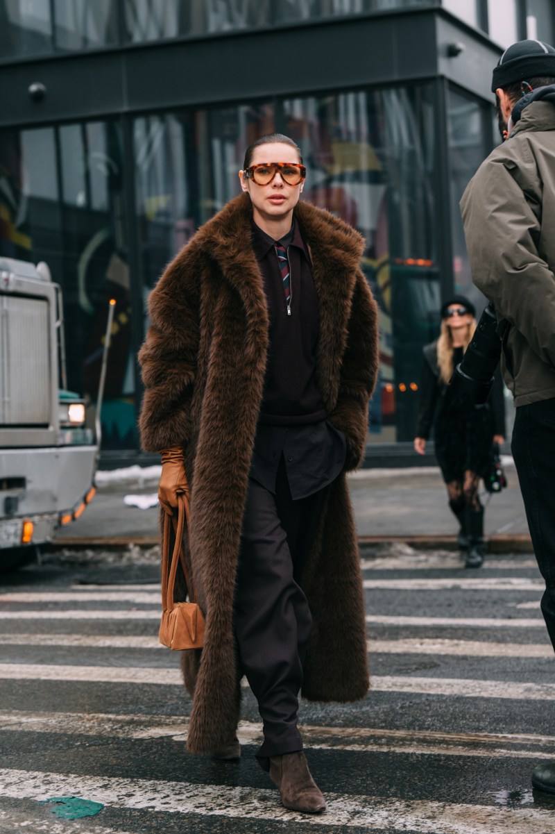 New York Fashion Week Fall/Winter 2026 highlighted winter dressing on Manhattan’s pavements, where editors, models, buyers, and creators signalled key winter trends. The most photographed looks leaned into textured fabrics and layering. Long leather or fur trenches in chocolate and espresso tones, styled with relaxed denim or tailored separates, introduced softer tailoring for fall.