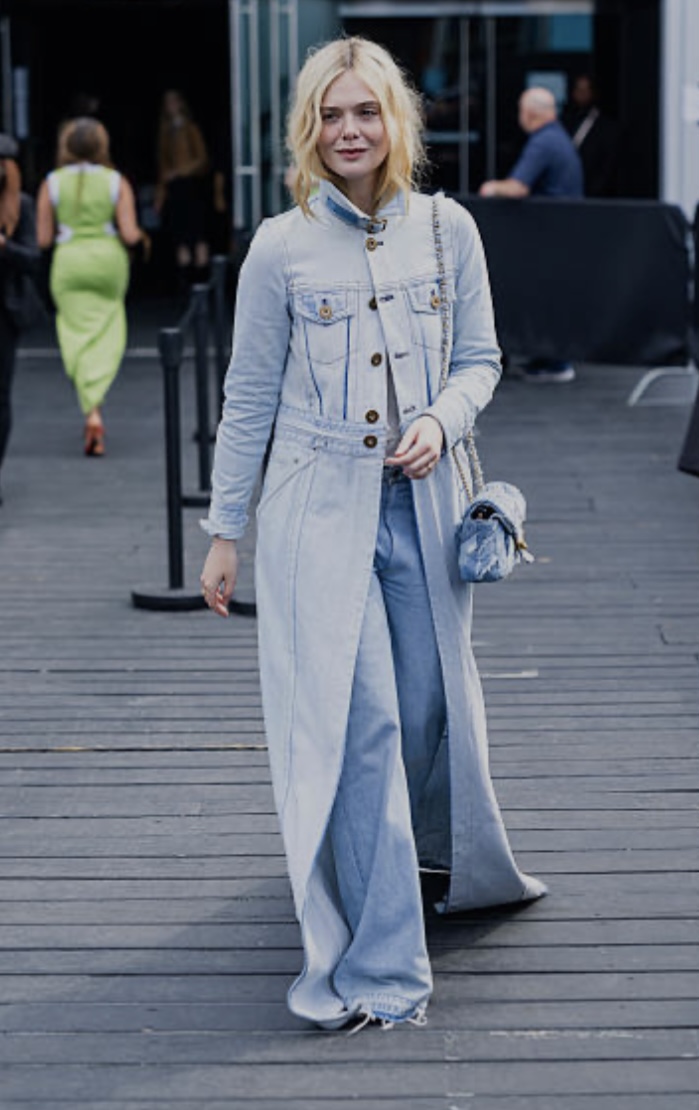 Nominated for Best Supporting Actress for Sentimental Value, Elle Fanning is a first-time Oscar contender. She isn’t known for wearing streetwear, but begun showing signs of experimenting with it. During the Spring 2026 ready-to-wear shows in New York, she was seen in a Y2K-inspired denim-on-denim outfit, complete with an oversized jean coat and a matching denim handbag.